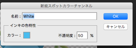 フォトショップでも、イラストレーターと同じように特色設定を利用すれば簡単に白版設定ができます。