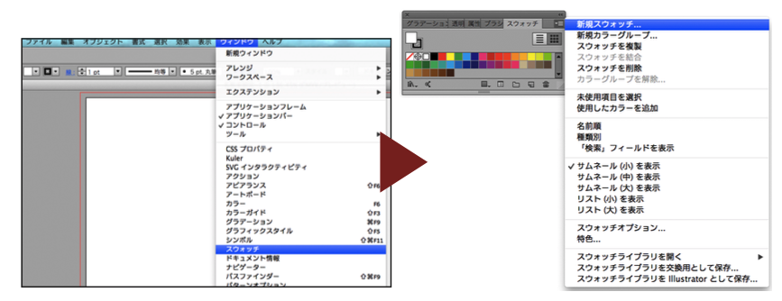 ⑵スウォッチウィンドウの右肩メニューで[新規スウォッチ]を呼び出し。