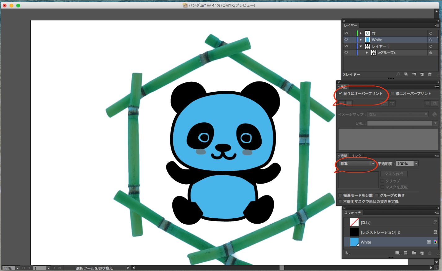 4、白版レイヤーのオーバープリント